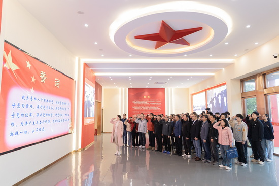 全体党员来到展馆大厅。在庄严肃穆的氛围中,全体党员整齐列队,面向鲜红的党旗,庄严举起右手,重温入党誓词。铿锵有力的誓言在展馆内久久回荡,充分彰显了党员们对党的无限忠诚和为共产主义事业奋斗终身的坚定决心。