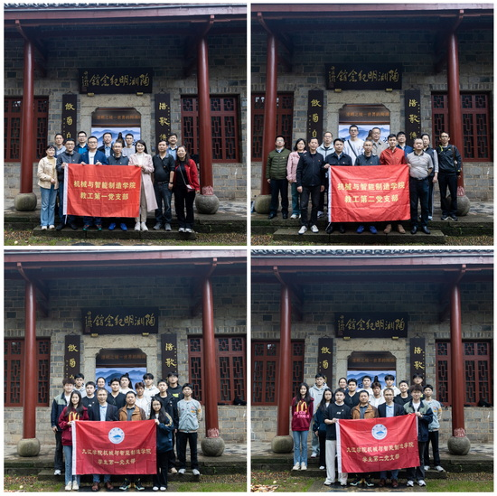 为扎实推进树立和践行正确政绩观学习教育和国家安全教育,4 月 11 日,机械学院教工第一党支部联合教工第二党支部、学生第一、第二党支部全体党员走进九江市柴桑区“三红”珍藏馆、陶渊明纪念馆开展“传红色薪火 护国家安全 谱发展新篇”主题党日活动。活动以“红”为主线,将正确政绩观教育和国家安全融入实地实景体验、重温入党誓词、聆听专题党课、交流学习体会等环节,是一场形式多样、内涵丰富的主题党日活动。